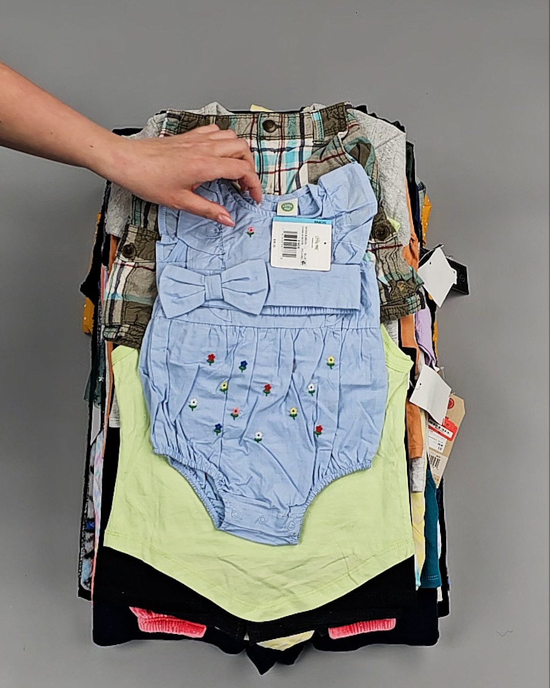 В мешке представлен детский ассортимент - это продукция актуальных европейских брендов высокого качества. Отлично подойдет для закупки на любой сезон.